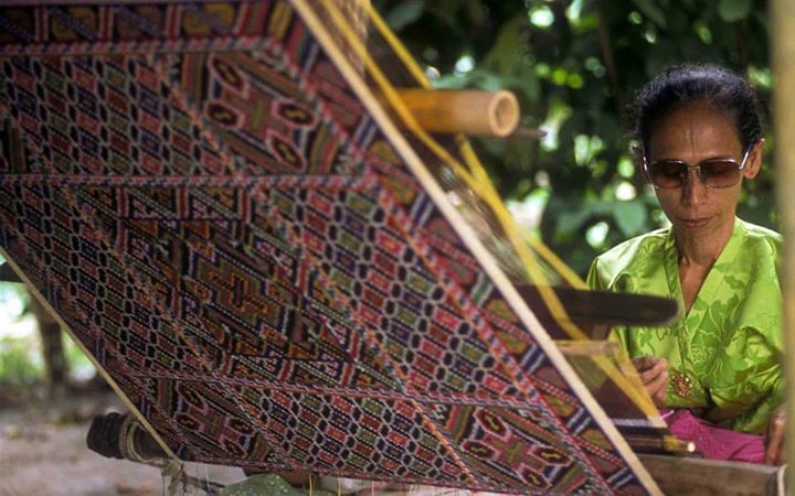 The families in her native Parang still depend on subsistence farming as their main source of income. But farming does not bring in enough money to support a family, and is not even an option for someone like Darhata Sawabi who was raised from birth to do only household chores. She has never married. Thus, weaving is her only possible source of income. The money she earns from making the colorful squares of cloth has enabled her to become self-sufficient and less dependent on her nephews and nieces. A hand-woven square measuring 39 by 40 inches, which takes her some three months to weave, brings her about P2,000. These squares are purchased by Tausug for headpieces, as well as to adorn native attire, bags, and other accessories. Her remarkable proficiency with the art and the intricacy of her designs allows her to price her creations a little higher than others. Her own community of weavers recognizes her expertise in the craft, her bold contrasting colors, evenness of her weave and her faithfulness to traditional designs.